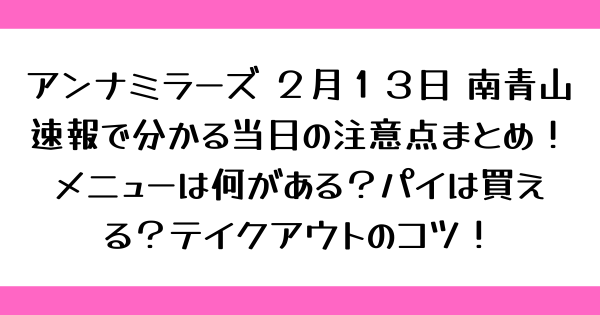 アンナミラーズ 2月13日 南青山 速報で分かる当日の注意点まとめ!メニューは何がある?パイは買える?テイクアウトのコツ!